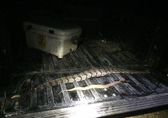 Daniel Sims with a rattlesnake he and Brad Goodman came across last Sunday night (Photo: Brad Goodman)